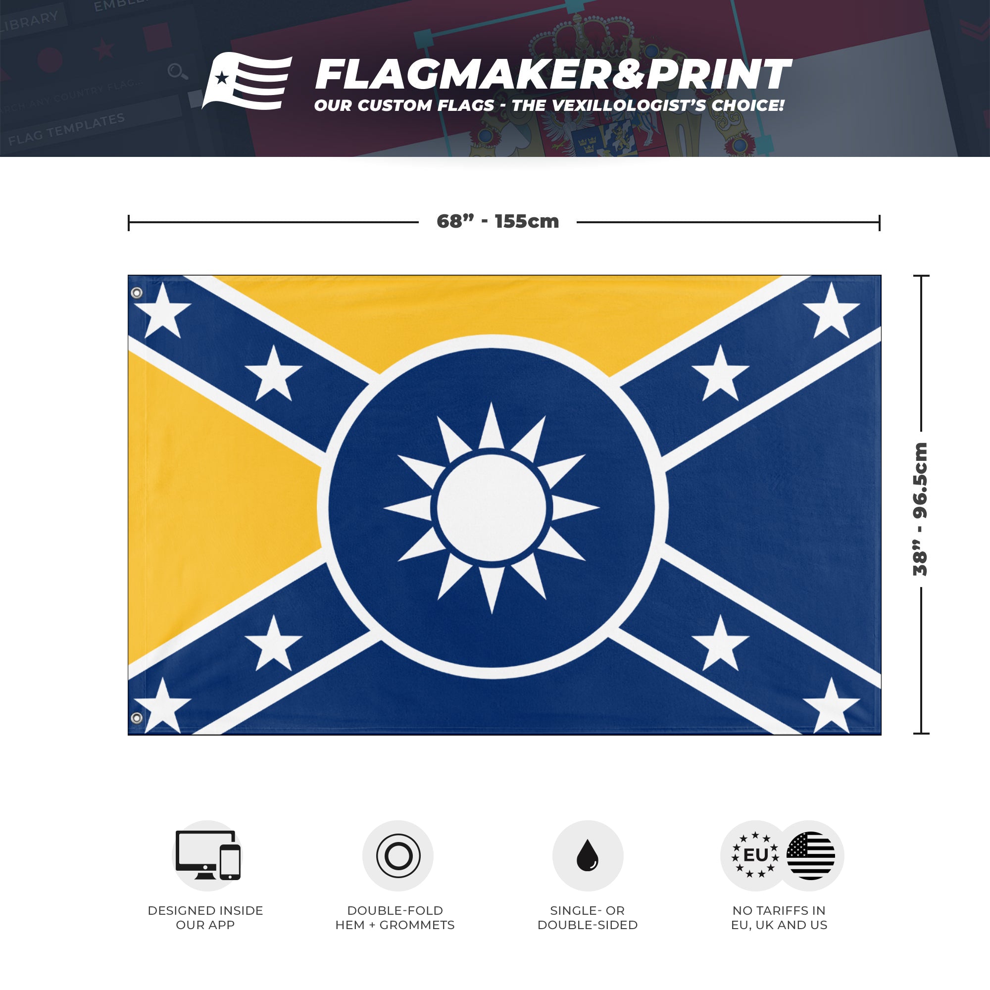 📐 Custom Personalized Flag made with Flagmaker & Print. Learn more about our product line-up on the Product Details page. This custom flag design is available as both a one-sided wall flag, or a double-sided display flag