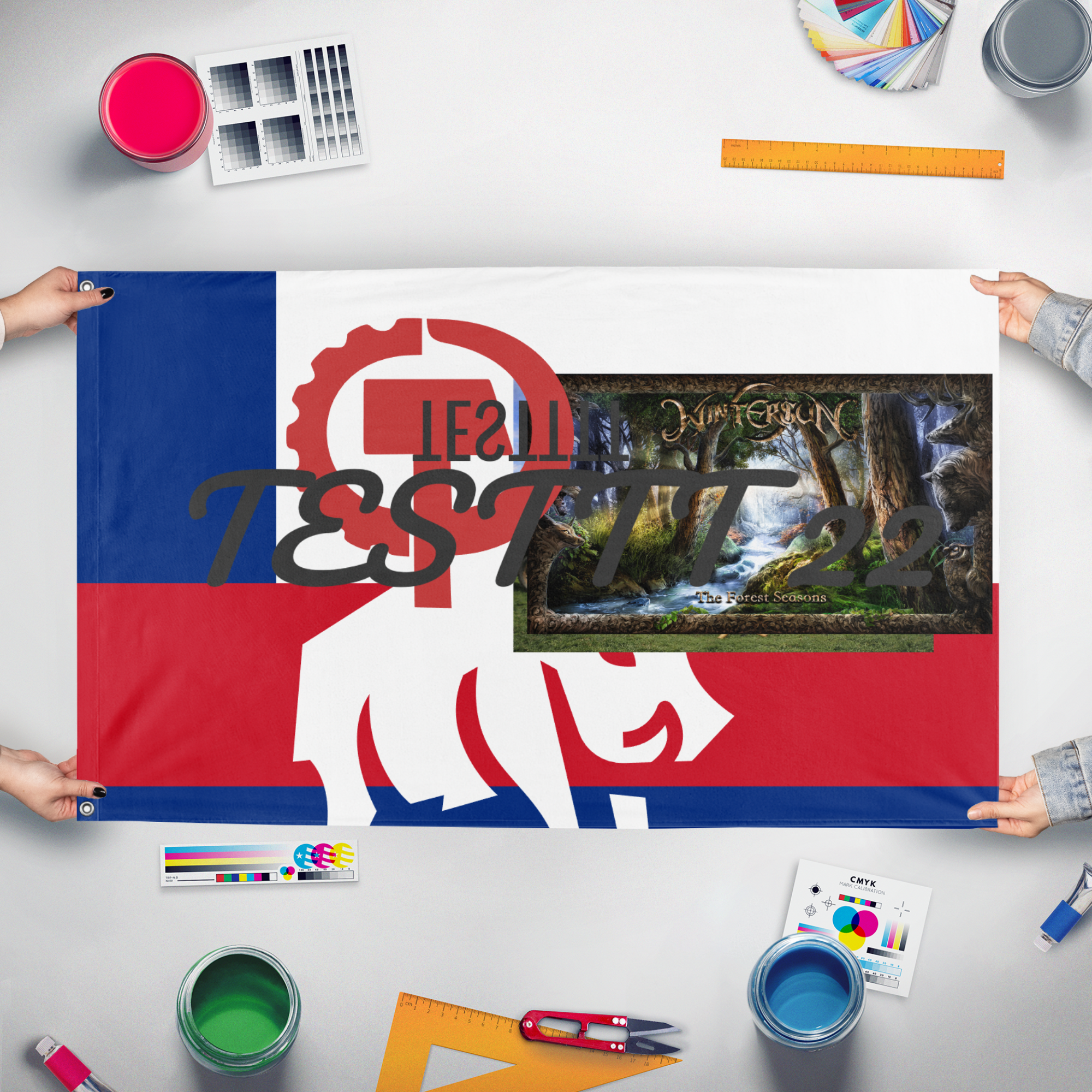 Our integrated flag maker app allows anyone to design and print their own flag. After finishing your design, you can print your flag in three easy steps.