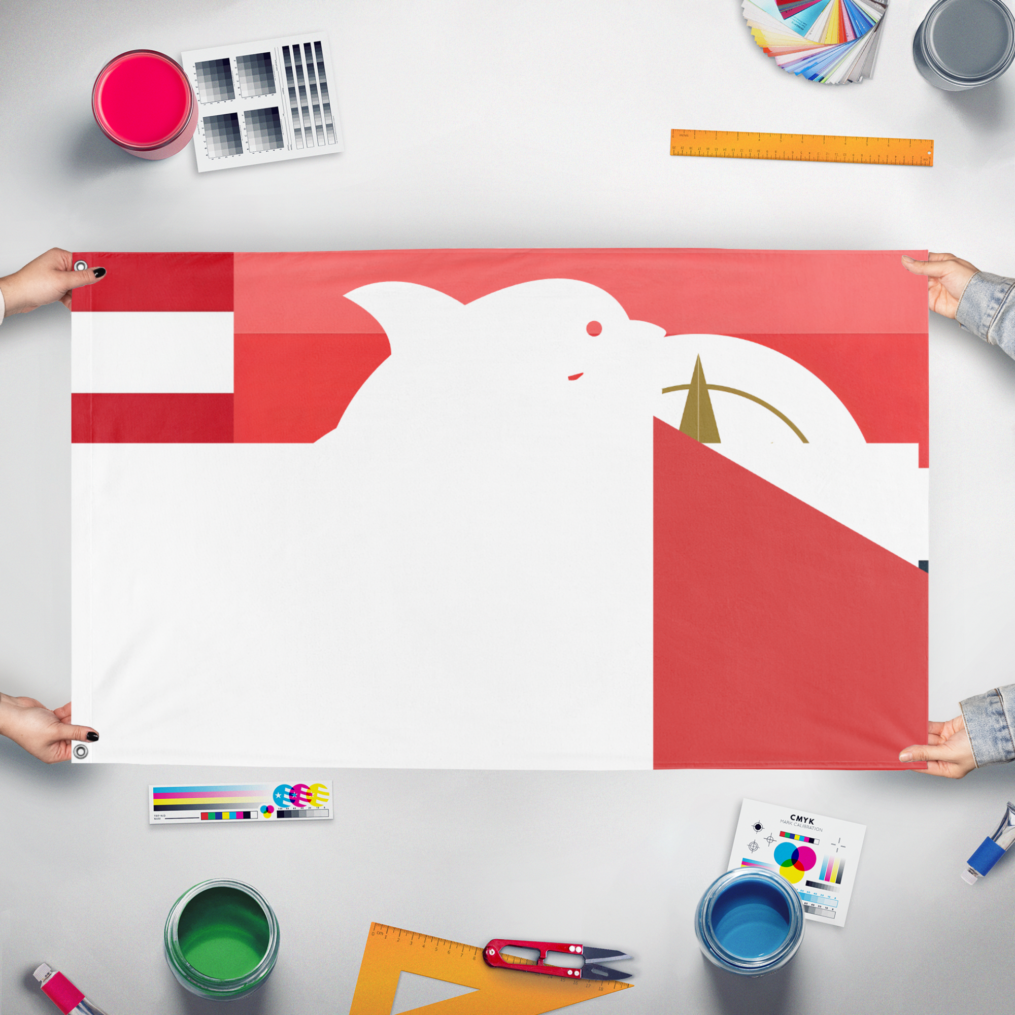 Our integrated flag maker app allows anyone to design and print their own flag. After finishing your design, you can print your flag in three easy steps.