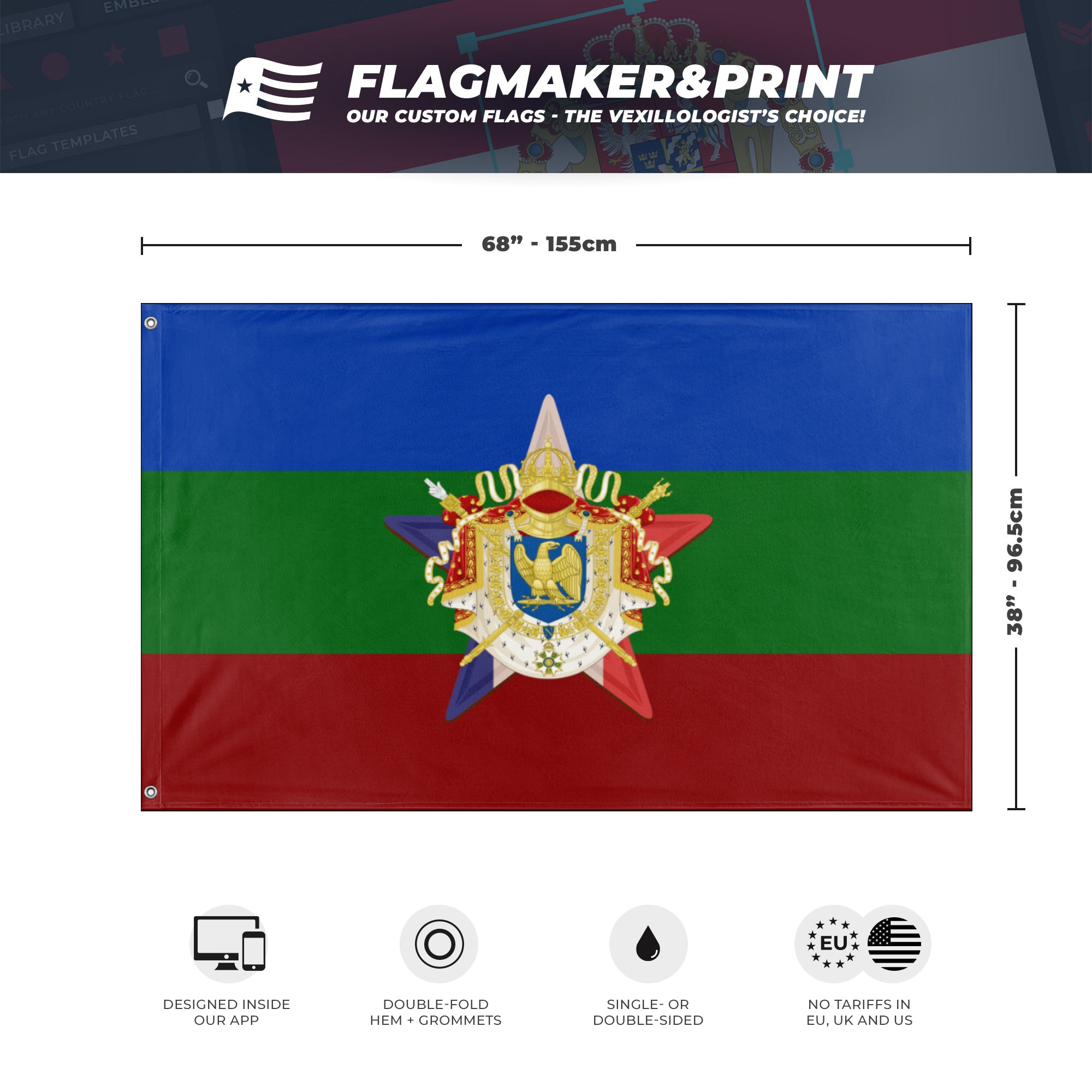 📐 Custom Personalized Flag made with Flagmaker & Print. Learn more about our product line-up on the Product Details page. This custom flag design is available as both a one-sided wall flag, or a double-sided display flag