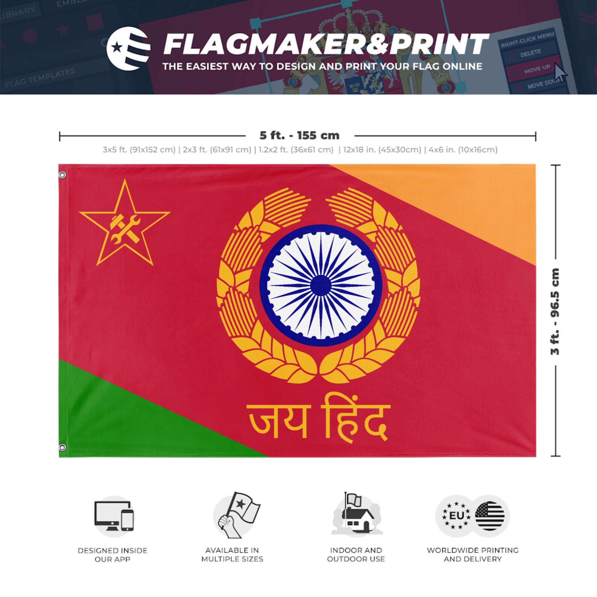 Our integrated flag maker app allows anyone to design and print their own flag. After finishing your design, you can print your flag in three easy steps.