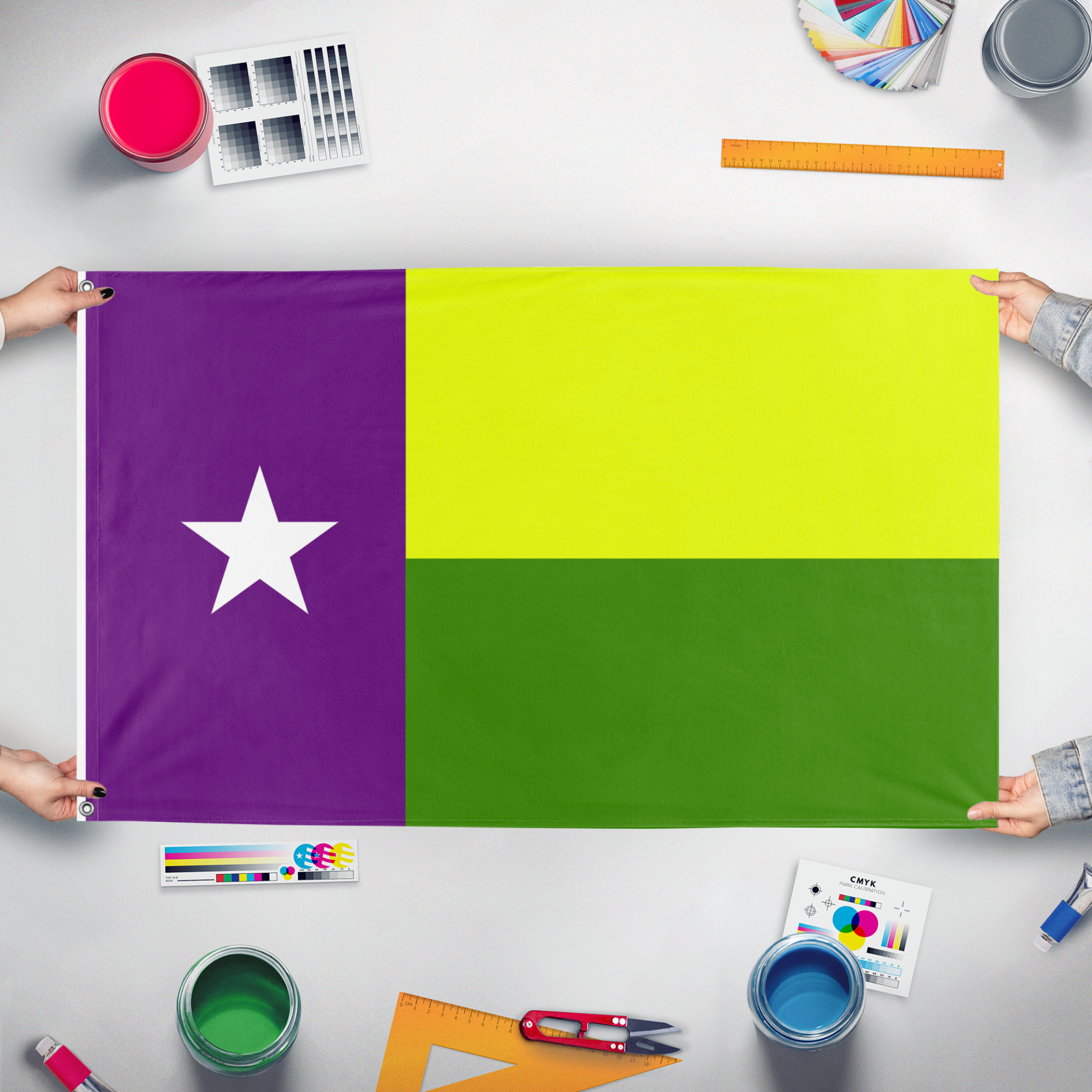 Our integrated flag maker app allows anyone to design and print their own flag. After finishing your design, you can print your flag in three easy steps.