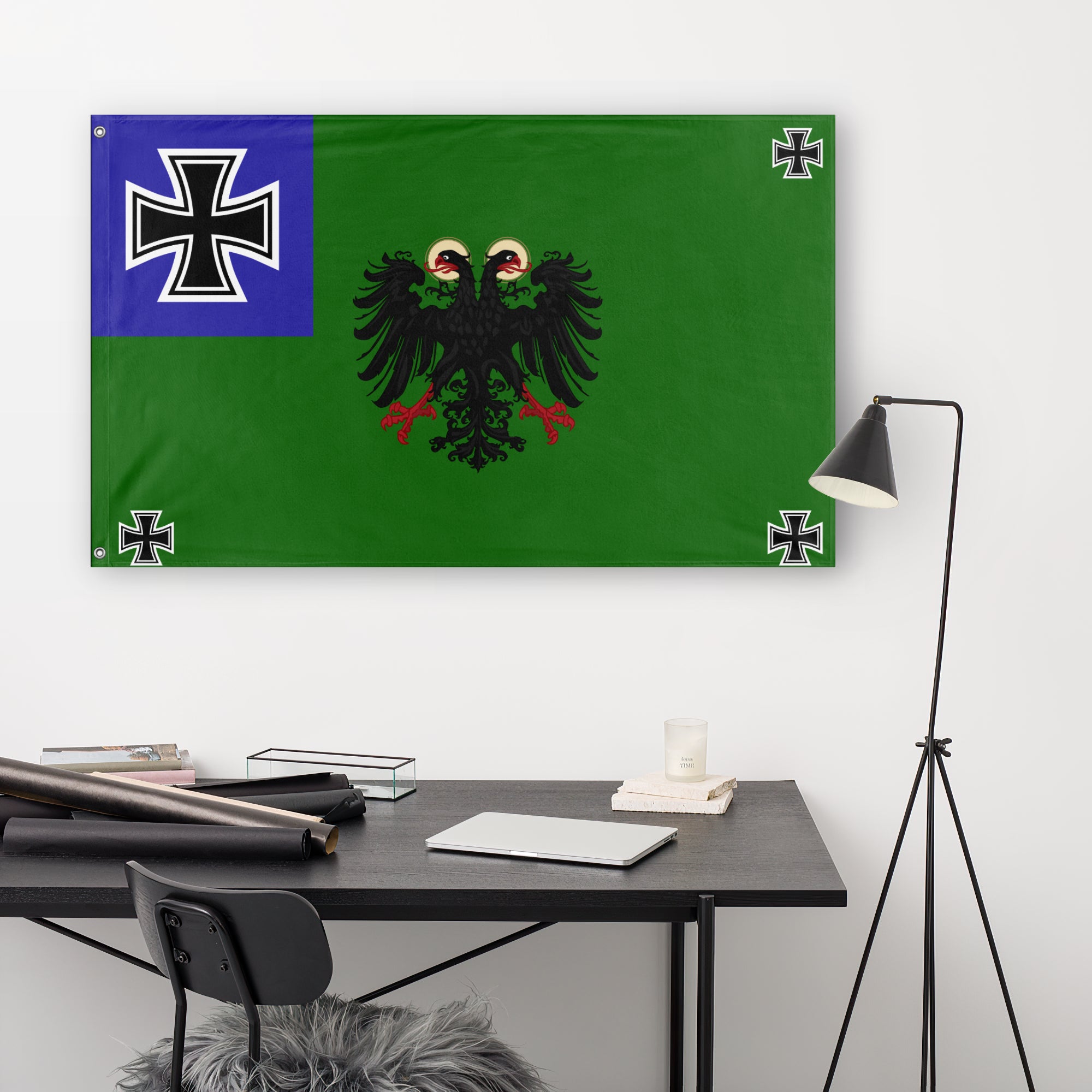 Our 3x5ft flags are made of 100% polyester knit; equipped with grommets for an authentic look and feel. This custom flag design is available as both a one-sided wall flag, or a double-sided display flag.