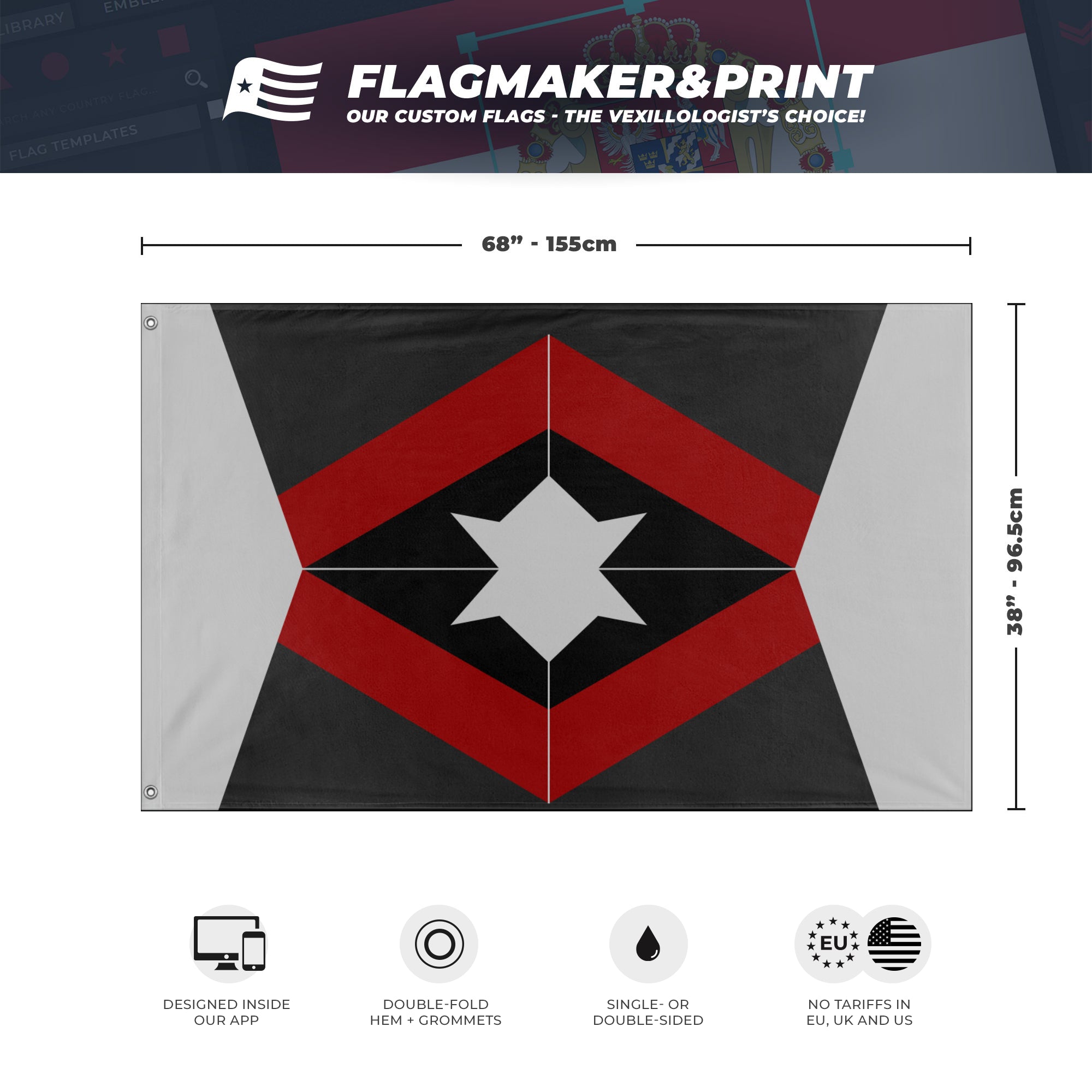 📐 Custom Personalized Flag made with Flagmaker & Print. Learn more about our product line-up on the Product Details page. This custom flag design is available as both a one-sided wall flag, or a double-sided display flag