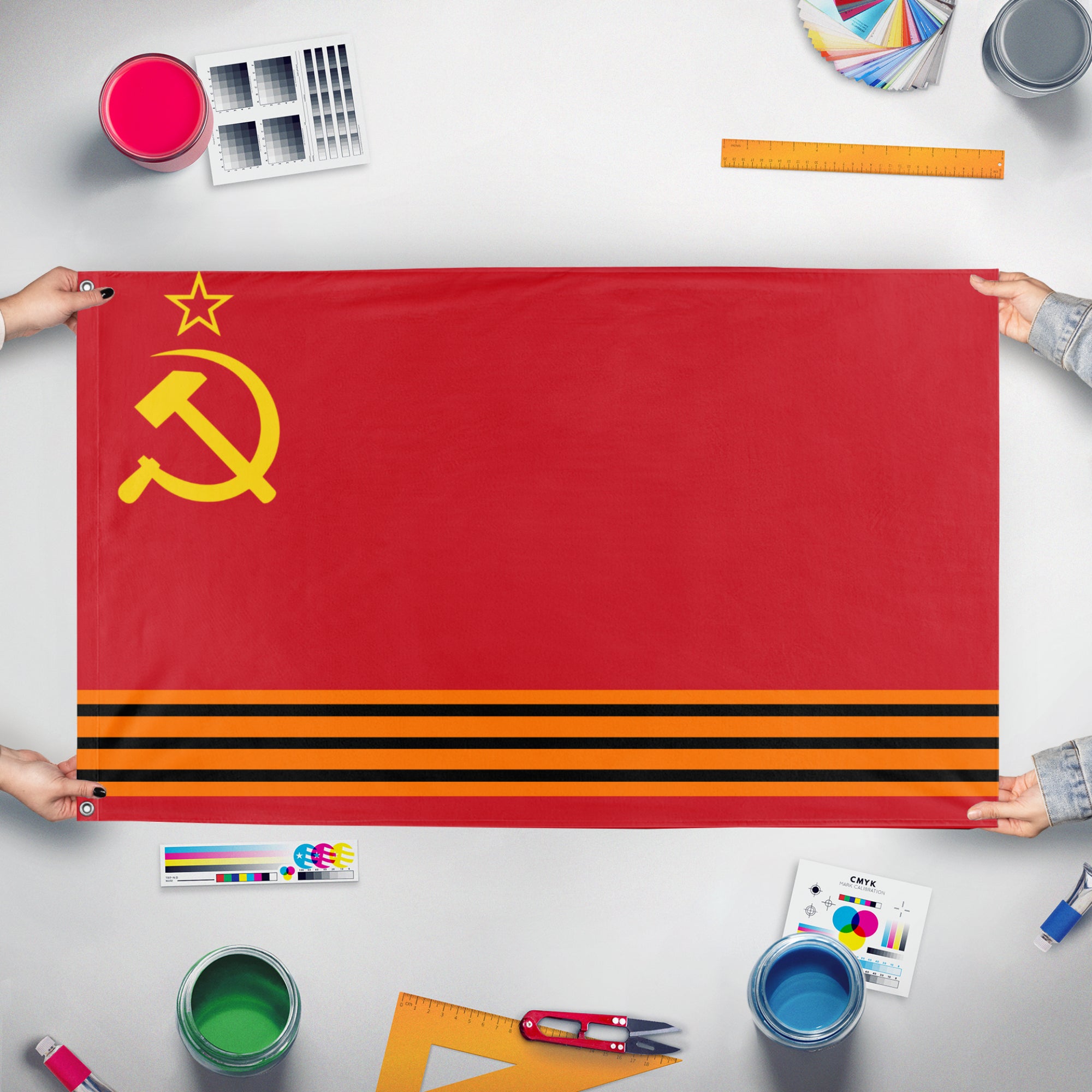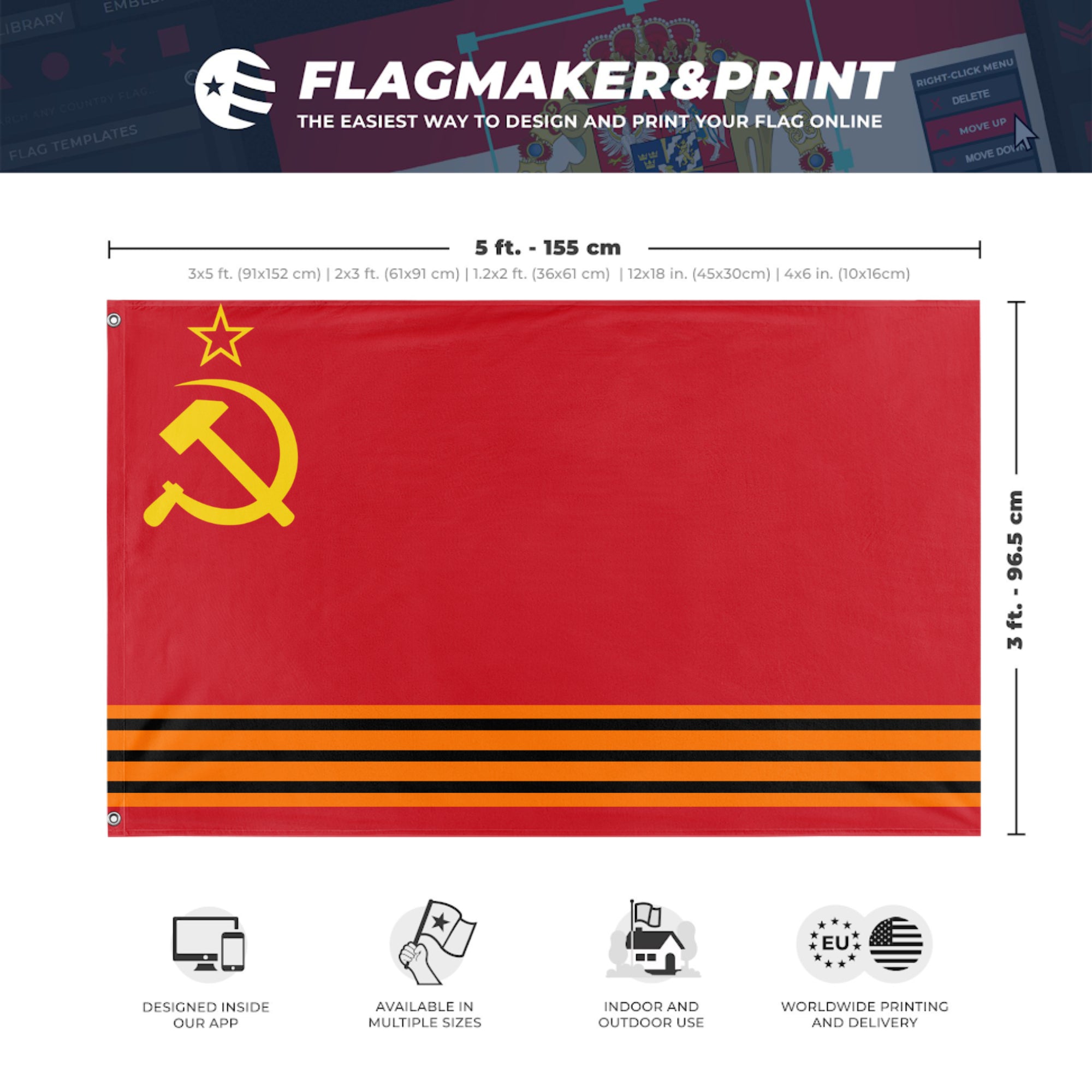 Our integrated flag maker app allows anyone to design and print their own flag. After finishing your design, you can print your flag in three easy steps.