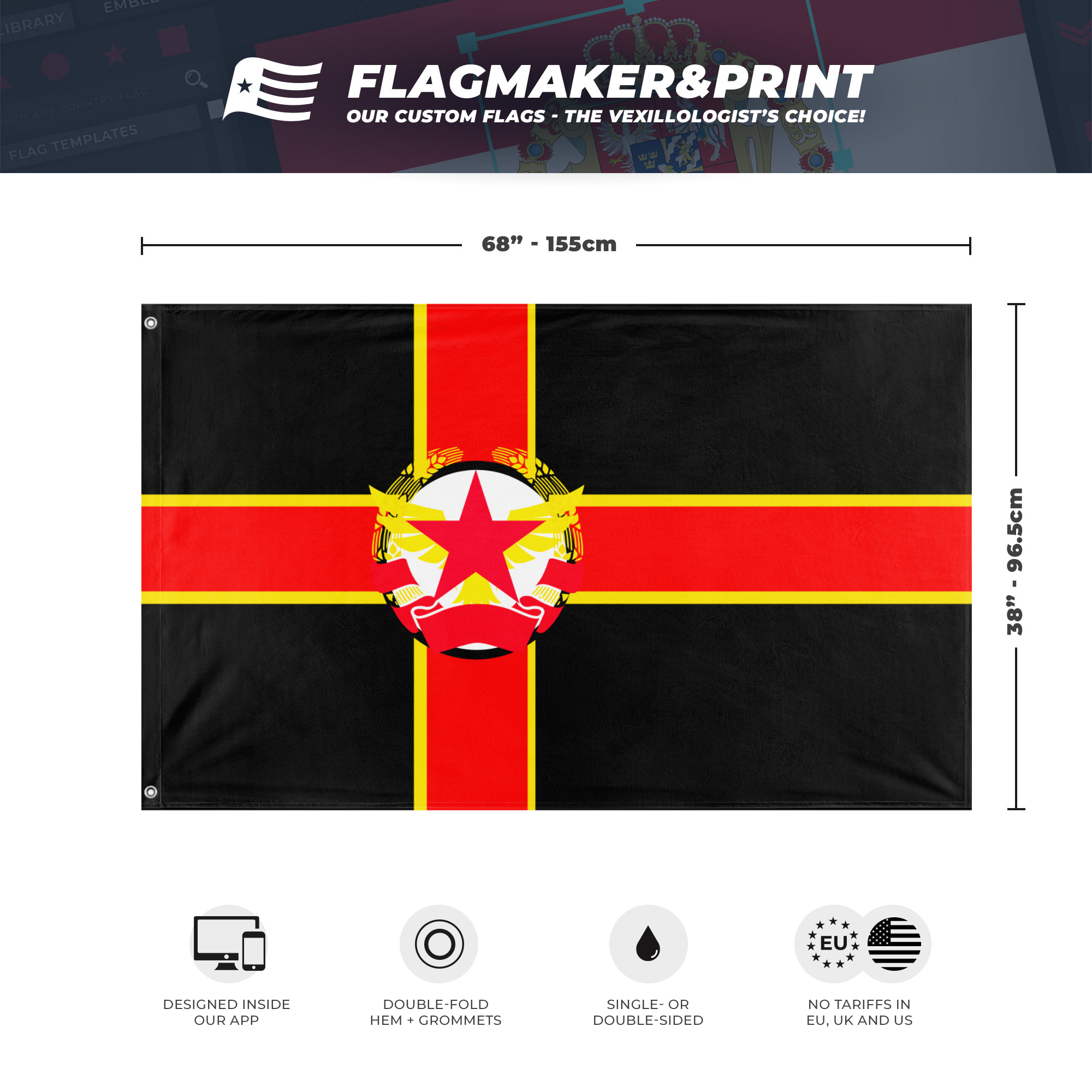 Flagmaker & Print is the easiest way to design and print your flag online. Try out our custom flag maker!