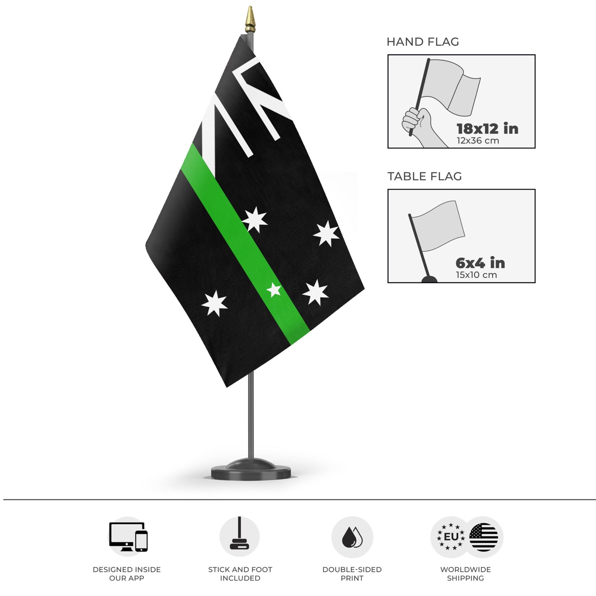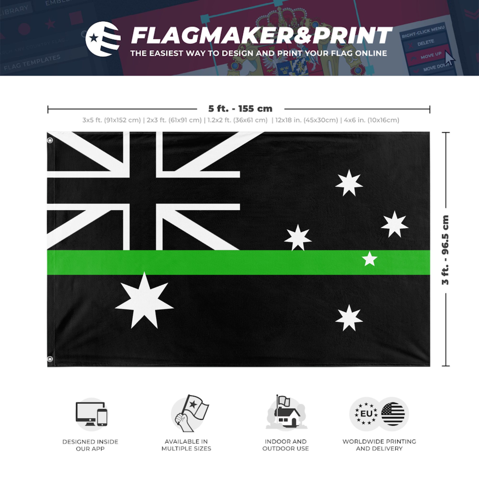 ✒️ The Thin Green Line Australia flag is a symbolic adaptation of the Australian national flag that features a single green stripe, often set against a subdued or black-and-white version of the flag. It is used to honor and recognize the service of park rangers, conservation officers, and other environmental and wildlife protection personnel across Australia. The green line represents the dedication, bravery, and ongoing efforts of these individuals in safeguarding the country’s natural ecosystems, biodiversity, and protected areas. The flag serves as a visual tribute to their vital role in environmental stewardship and frontline conservation work.