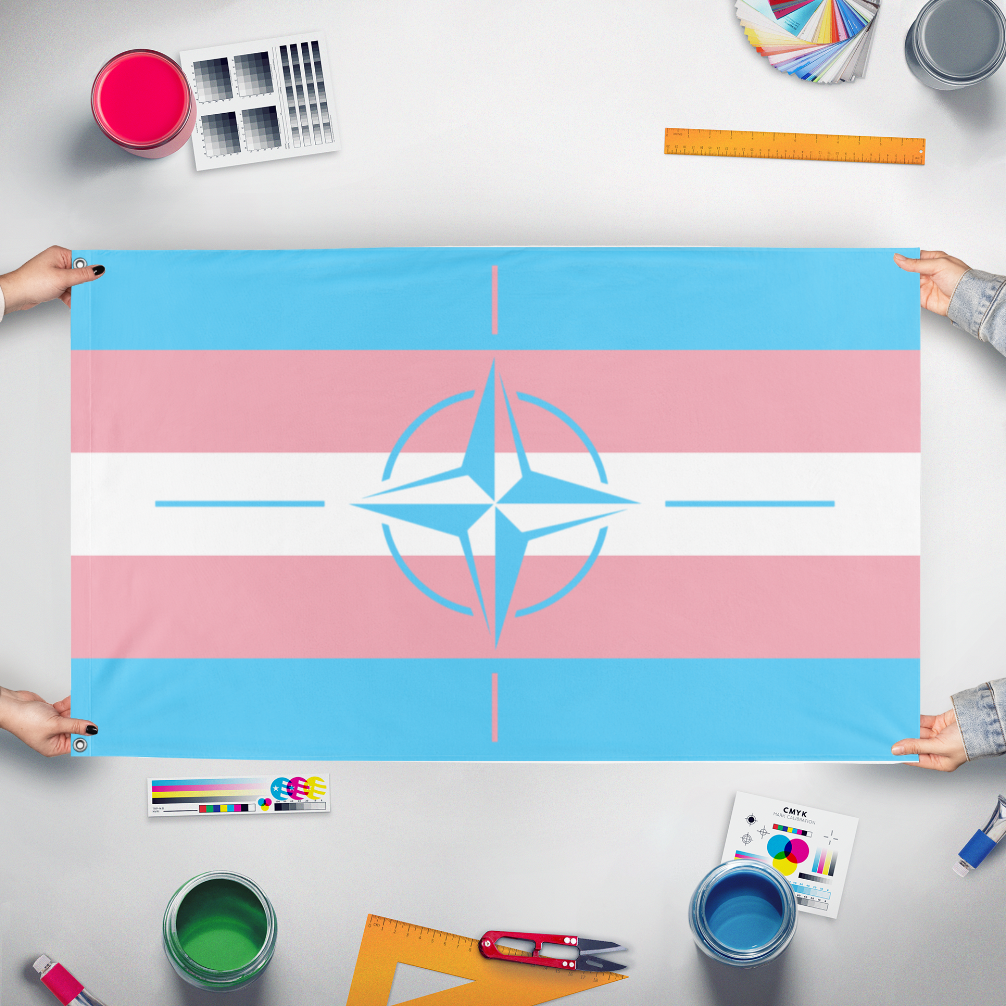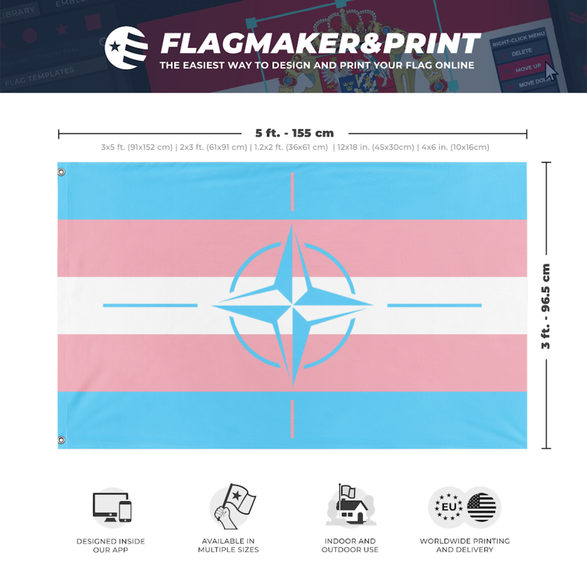 Our integrated flag maker app allows anyone to design and print their own flag. After finishing your design, you can print your flag in three easy steps.