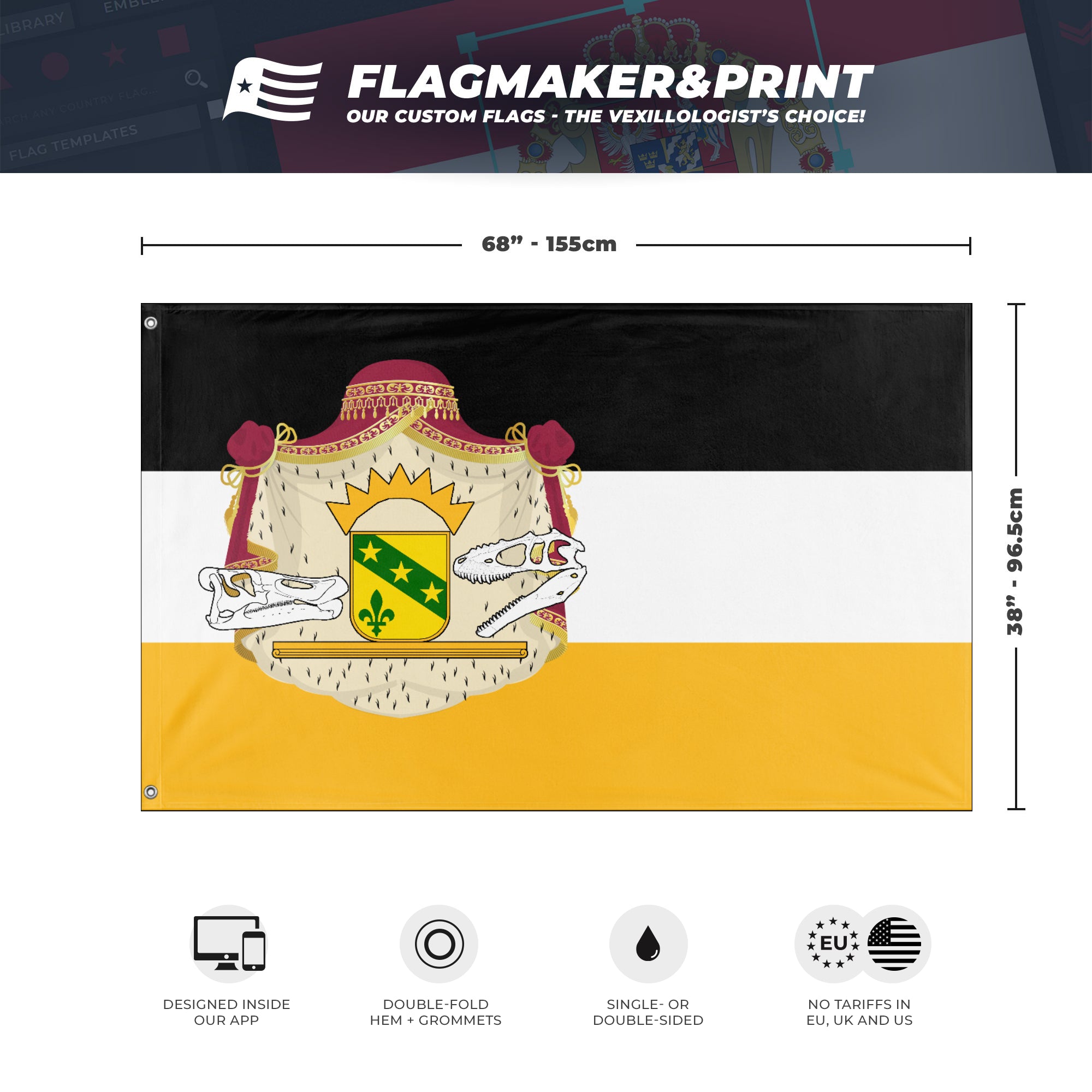 📐 Custom Personalized Flag made with Flagmaker & Print. Learn more about our product line-up on the Product Details page. This custom flag design is available as both a one-sided wall flag, or a double-sided display flag