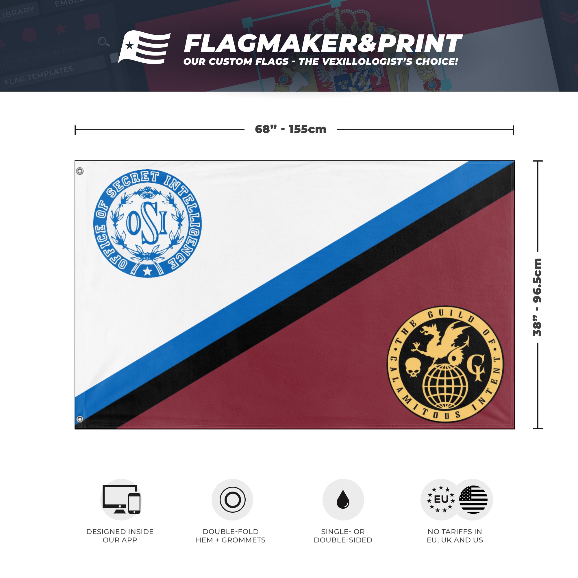 📐 Custom Personalized Flag made with Flagmaker & Print. Learn more about our product line-up on the Product Details page. This custom flag design is available as both a one-sided wall flag, or a double-sided display flag