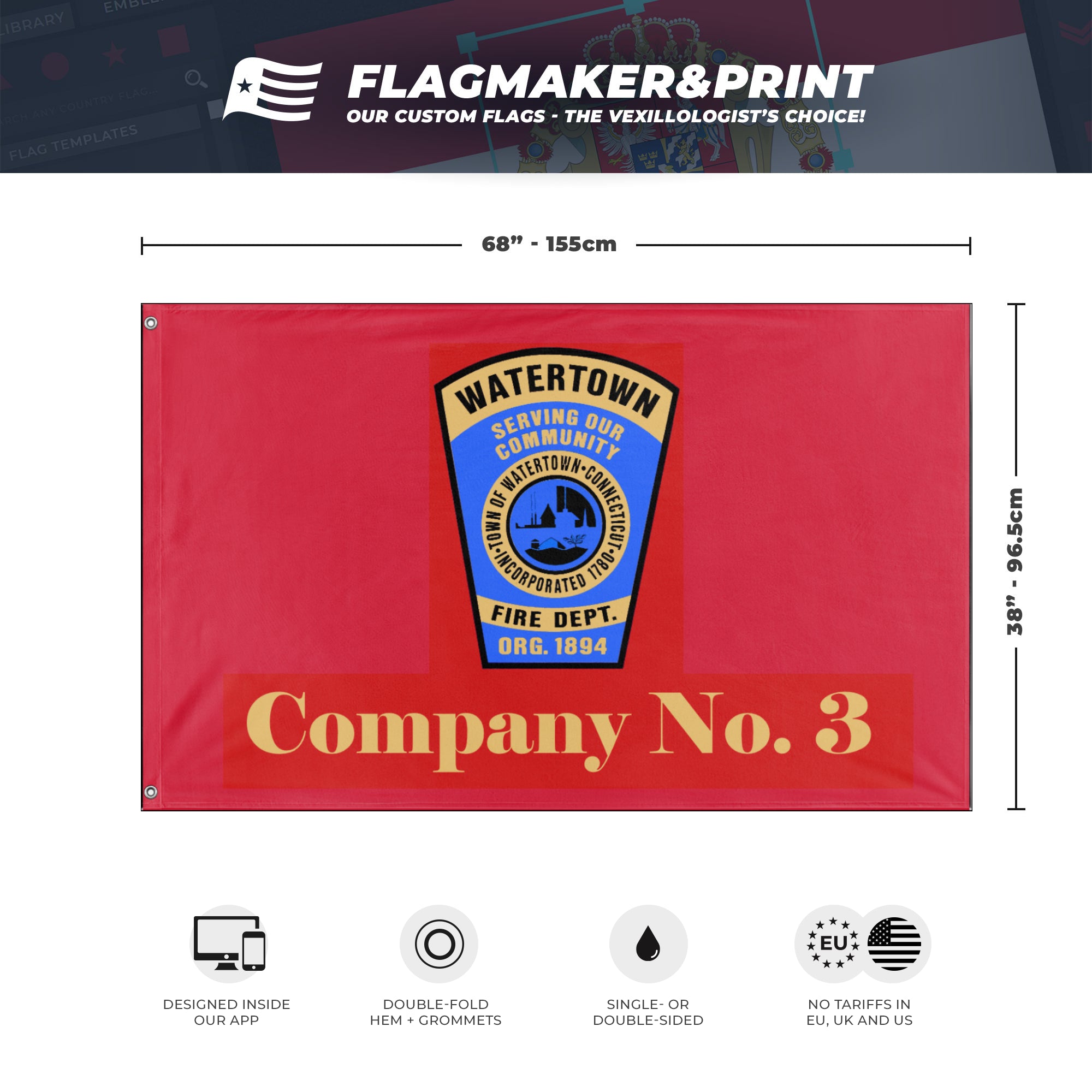 📐 Custom Personalized Flag made with Flagmaker & Print. Learn more about our product line-up on the Product Details page. This custom flag design is available as both a one-sided wall flag, or a double-sided display flag