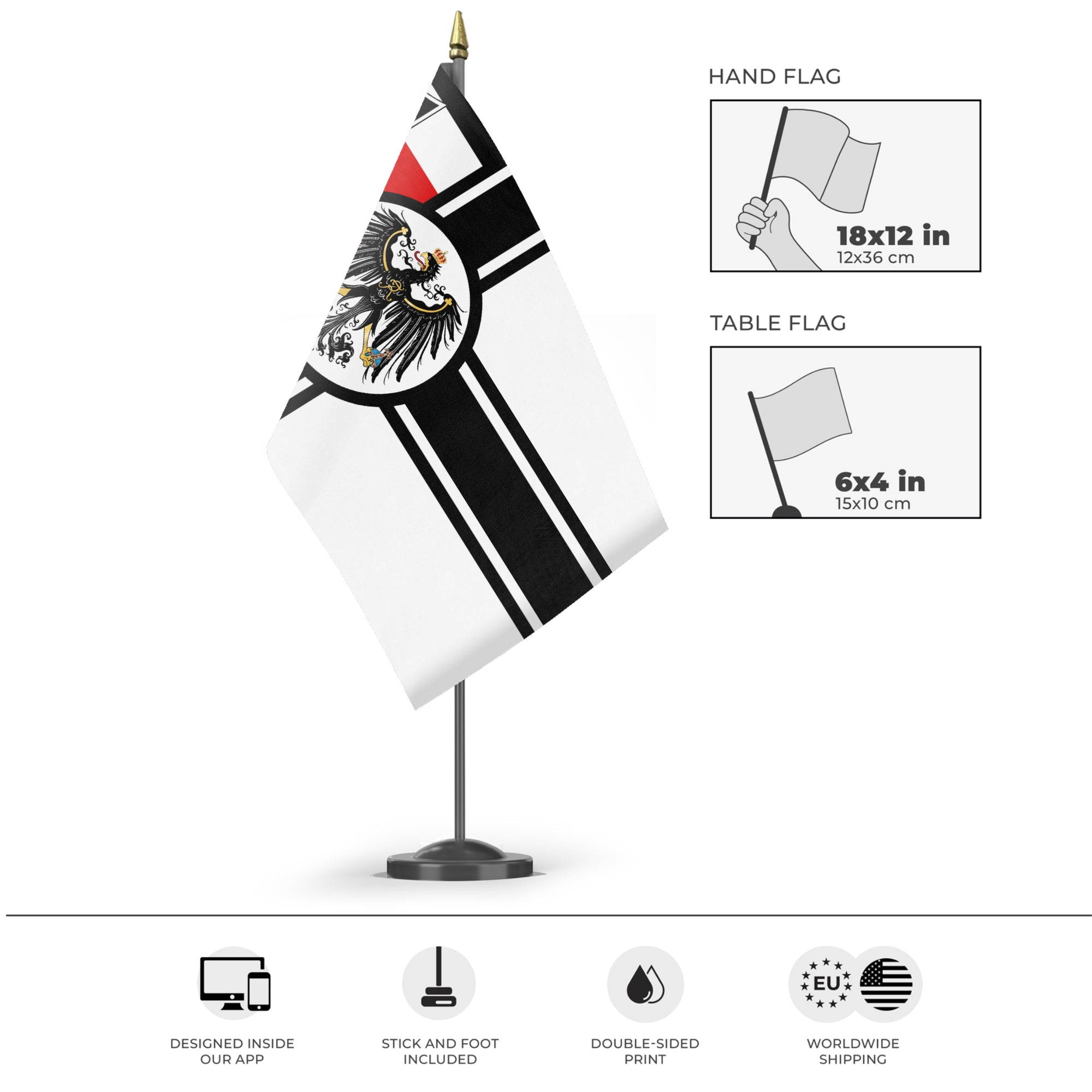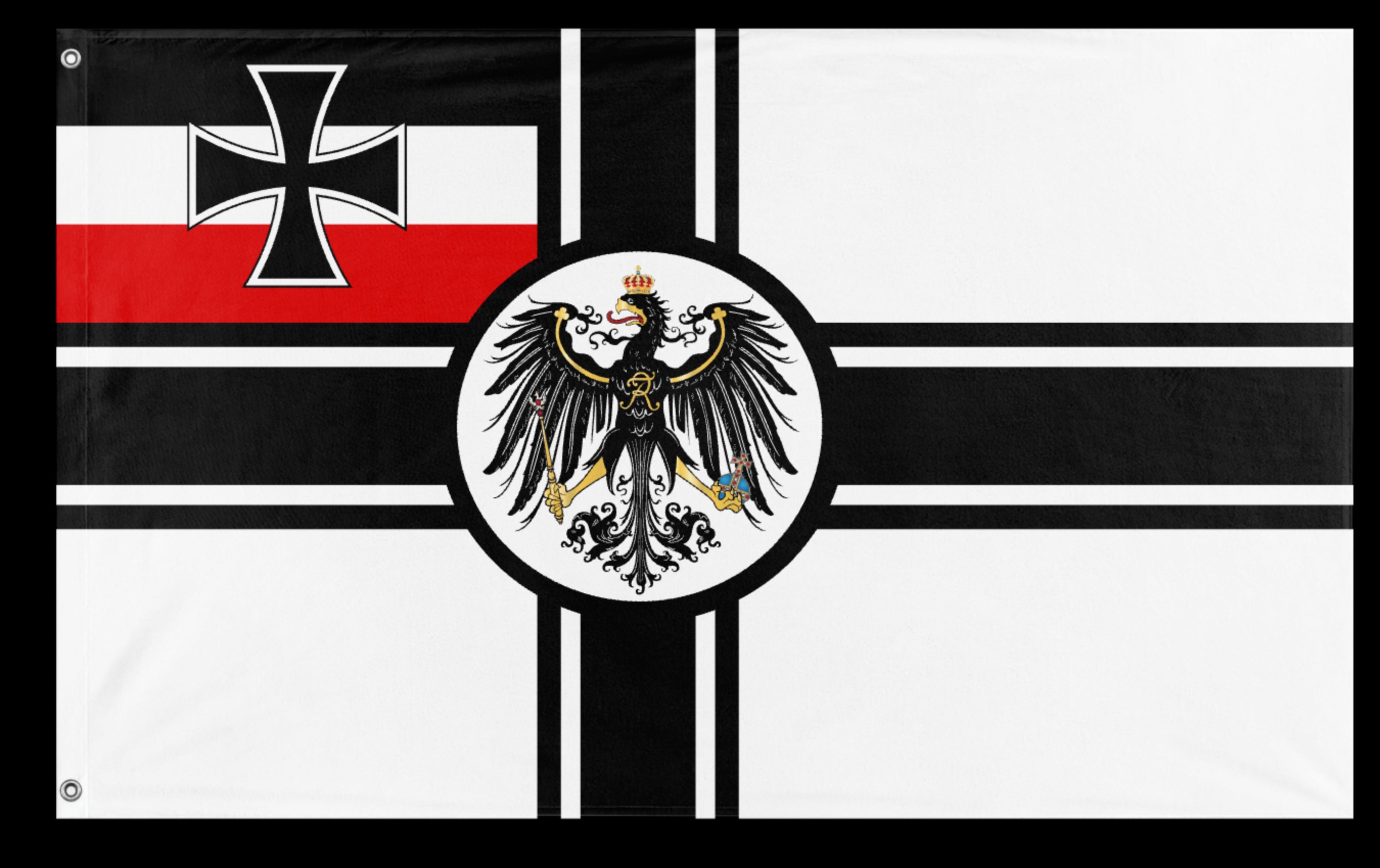✒️ During World War I, the Imperial German War Ensign (German: Reichskriegsflagge) served as the war flag and naval ensign of the German Empire. Building upon the flag of the North German Confederation, it featured a white field with a large black Nordic cross, fimbriated in white and black, which was offset towards the hoist. At the intersection of the cross, a white disc contained the Prussian eagle, crowned and often with the "FR" (for Fridericus Rex) monogram. In the canton (upper hoist corner), the black, white, and red tricolour of the German Empire was displayed, charged with a black Iron Cross. This complex design powerfully combined the Prussian military tradition with the national colors of the newly unified German Empire, symbolizing its formidable naval and military might.
