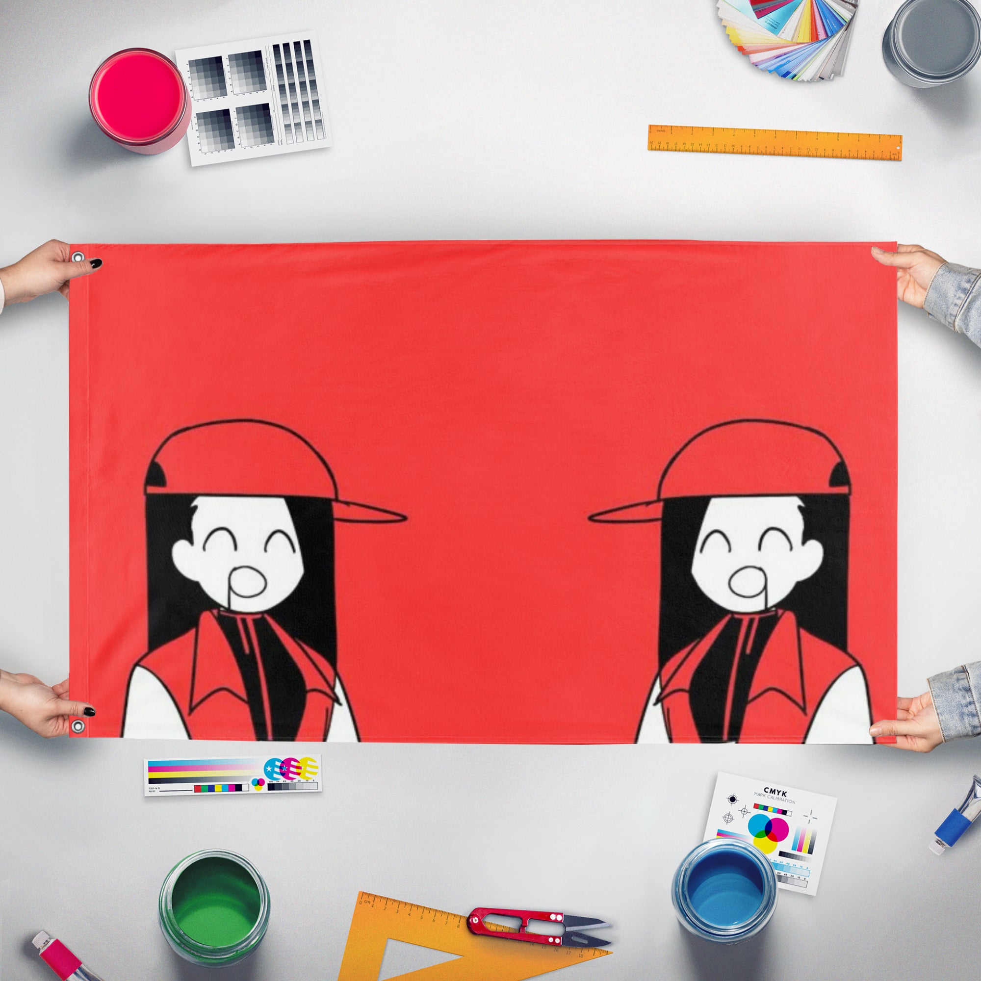 Our integrated flag maker app allows anyone to design and print their own flag. After finishing your design, you can print your flag in three easy steps.