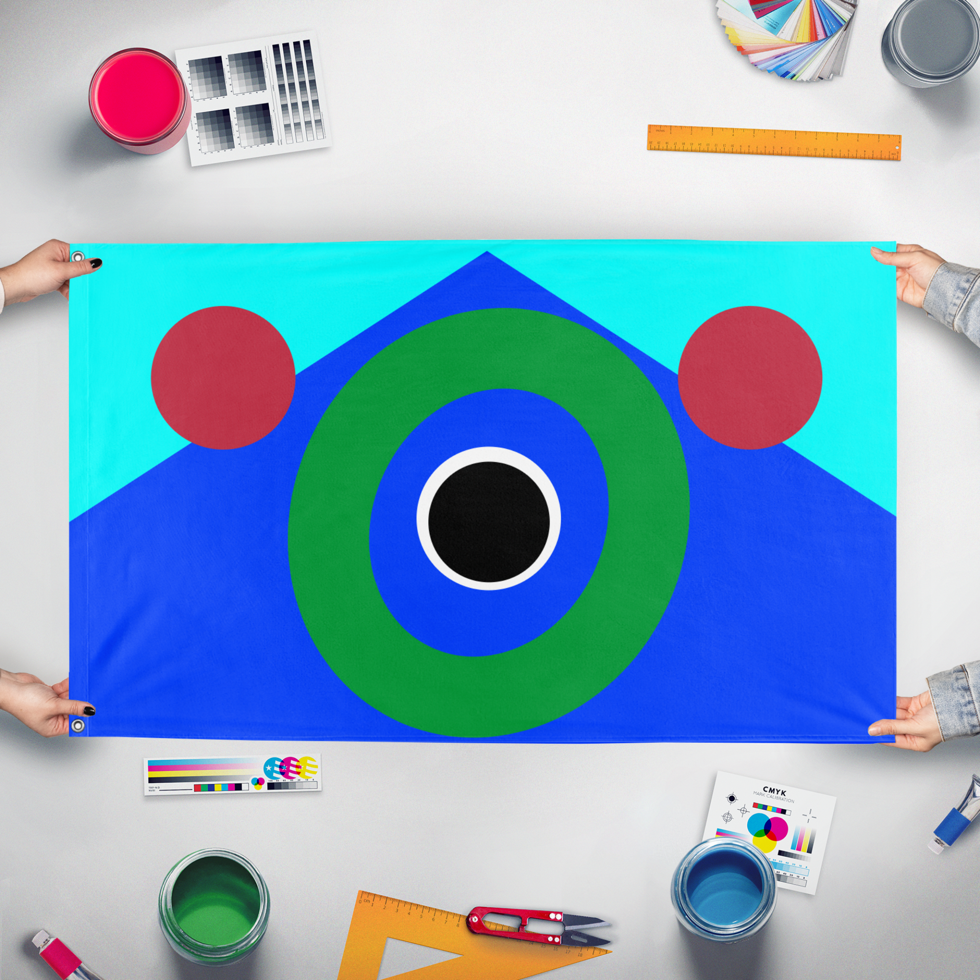 Our integrated flag maker app allows anyone to design and print their own flag. After finishing your design, you can print your flag in three easy steps.